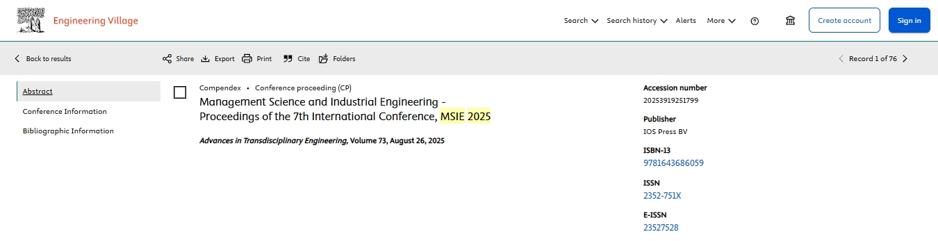 October 13, 2025 News! MSIE 2025 papers have been indexed in EI compendex and Scopus!