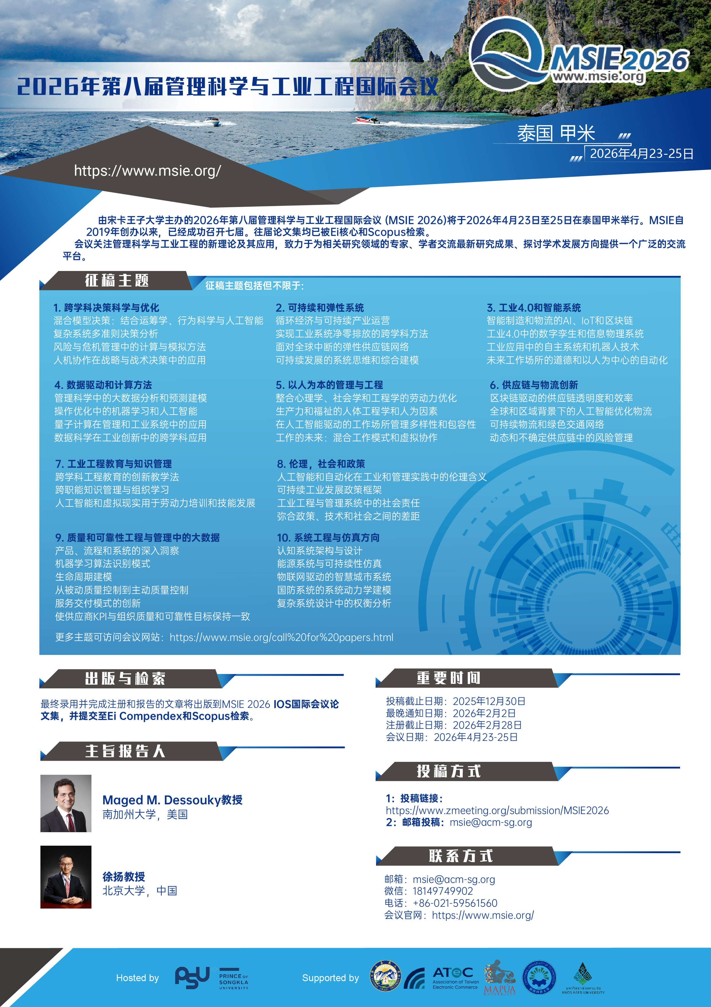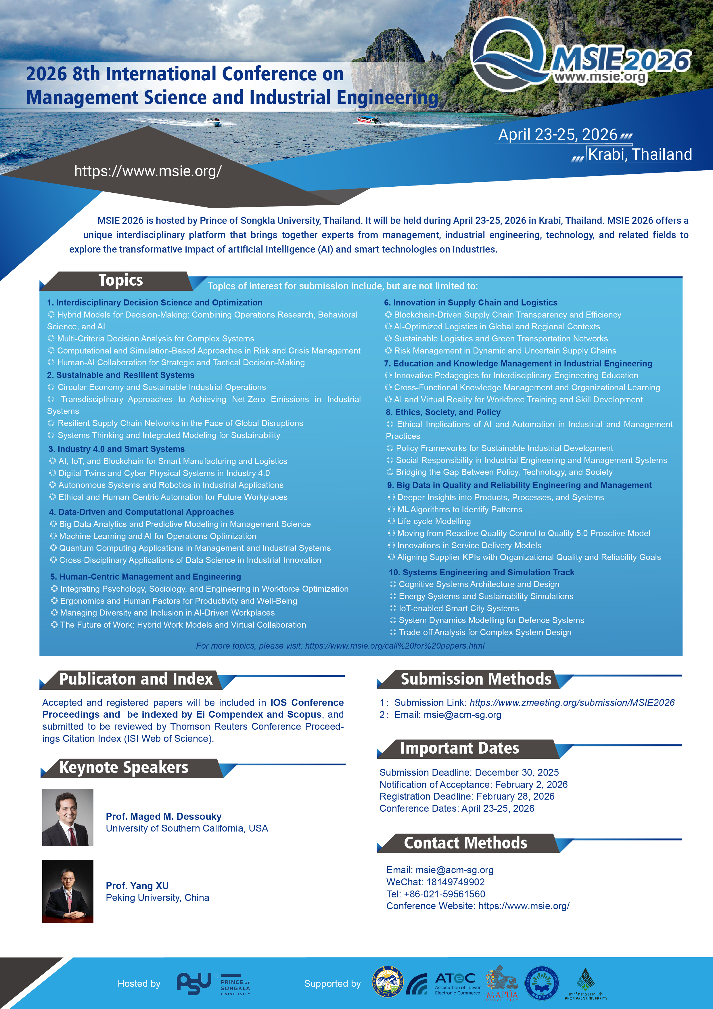 Chinese)The 2026 8th International Conference on Management Science and Industrial Engineering (MSIE 2026) invites high-quality submissions that explore innovative, interdisciplinary, and transdisciplinary approaches to addressing complex challenges at the intersection of management science, industrial engineering, and beyond. Topics of interest include, but are not limited to:
